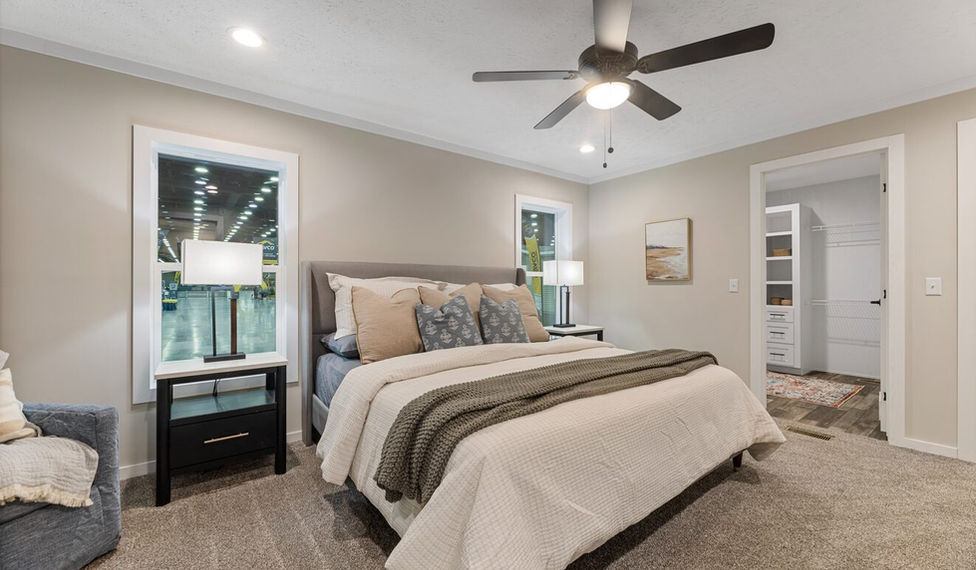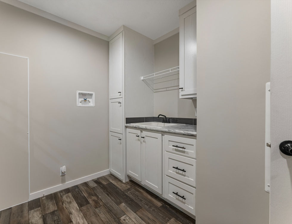 The Stratos features a thoughtfully designed three bedroom, two bath layout with an open living, dining, and kitchen area that feels spacious and practical for everyday living. The kitchen offers generous counter and cabinet space and flows easily into the dining and living areas, making meal prep and entertaining effortless. The private primary suite includes a walk-in closet and full bath, while the additional bedrooms are well sized and versatile for family, guests, or a home office. A dedicated laundry room adds everyday convenience without interrupting the main living space. Built with 2x6 exterior walls, Low-E double pane argon gas windows, and exceptional insulation values for year-round comfort and efficiency, the Stratos is crafted for quality and lasting performance. Finished with 30 year architectural shingles and six inch recessed LED lighting throughout, this home balances durable construction with modern, comfortable design.